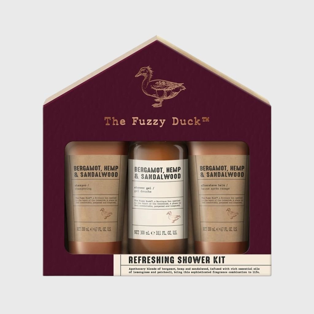 Dopřejte si smyslnou relaxaci s triem, které vyřeší celou denní hygienu – od sprchy po péči po holení. Vůně jiskřivého bergamotu, hřejivého konopí a krémového santalového dřeva promění rutinu v krátký wellness rituál. Elegantní estetika kolekce The Fuzzy Duck v lékárnickém stylu z ní dělá dárek, se kterým vždy uspějete. Vegan & Cruelty Free.