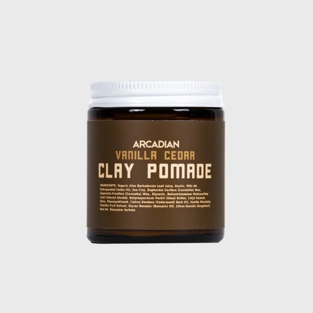Arcadian Clay Pomade - nyní s příjemnou vůní Vanilla Cedar - vanilka a cedrové dřevo. Úžasná "homebrew" clay-pomáda je nezbytnou nutností každého, kdo hledá stylingový produkt s matným a přirozeným vzhledem. Za dobu existence značky Arcadian se z Clay Pomade stal jejich ikonický a nejúspěšnější produkt, který kombinuje skvělé vlastnosti hlíny (claye), ale zároveň se aplikuje snadno jako pomáda.