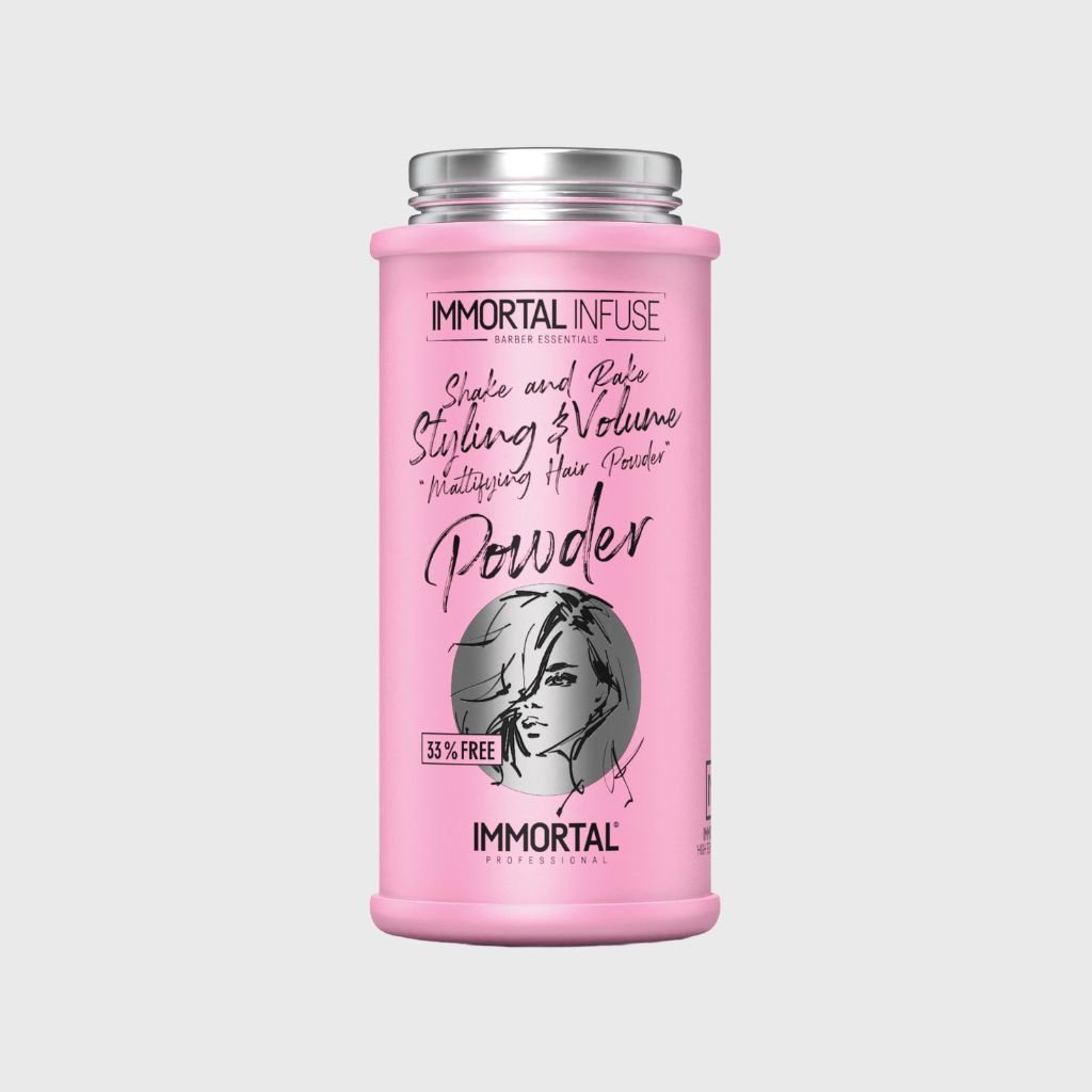 Immortal Volume & Styling Powder je pudr na vlasy s matným vzhledem a lehkou fixací, který dodává vlasům objem, ale zároveň poskytuje přirozený styling.